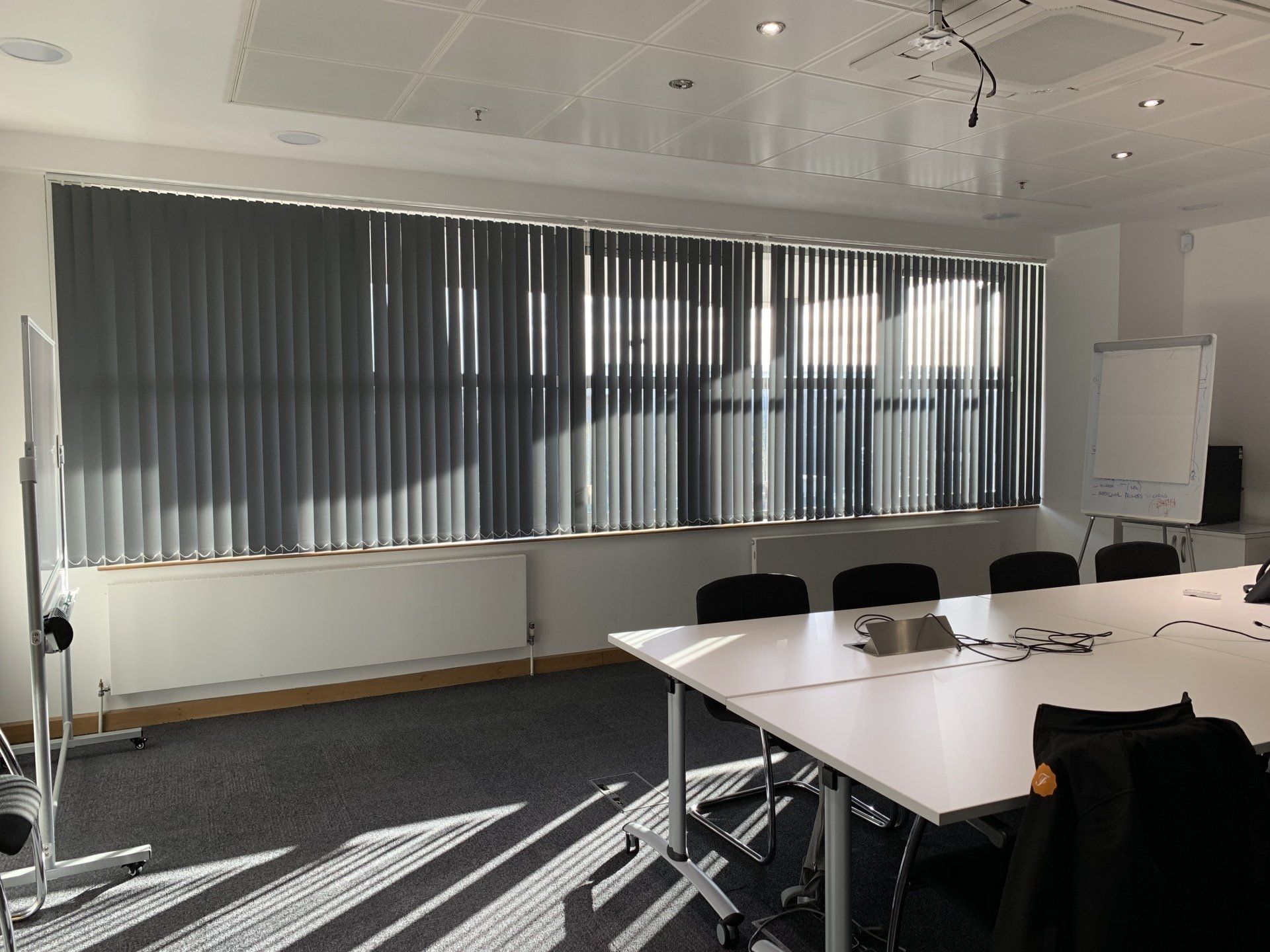 Vertical blinds provide variable control and direction of light entering the room, allowing for glare free computer screens, protection from the damaging effects of direct sunlight on furnishings and total privacy whenever you wish.